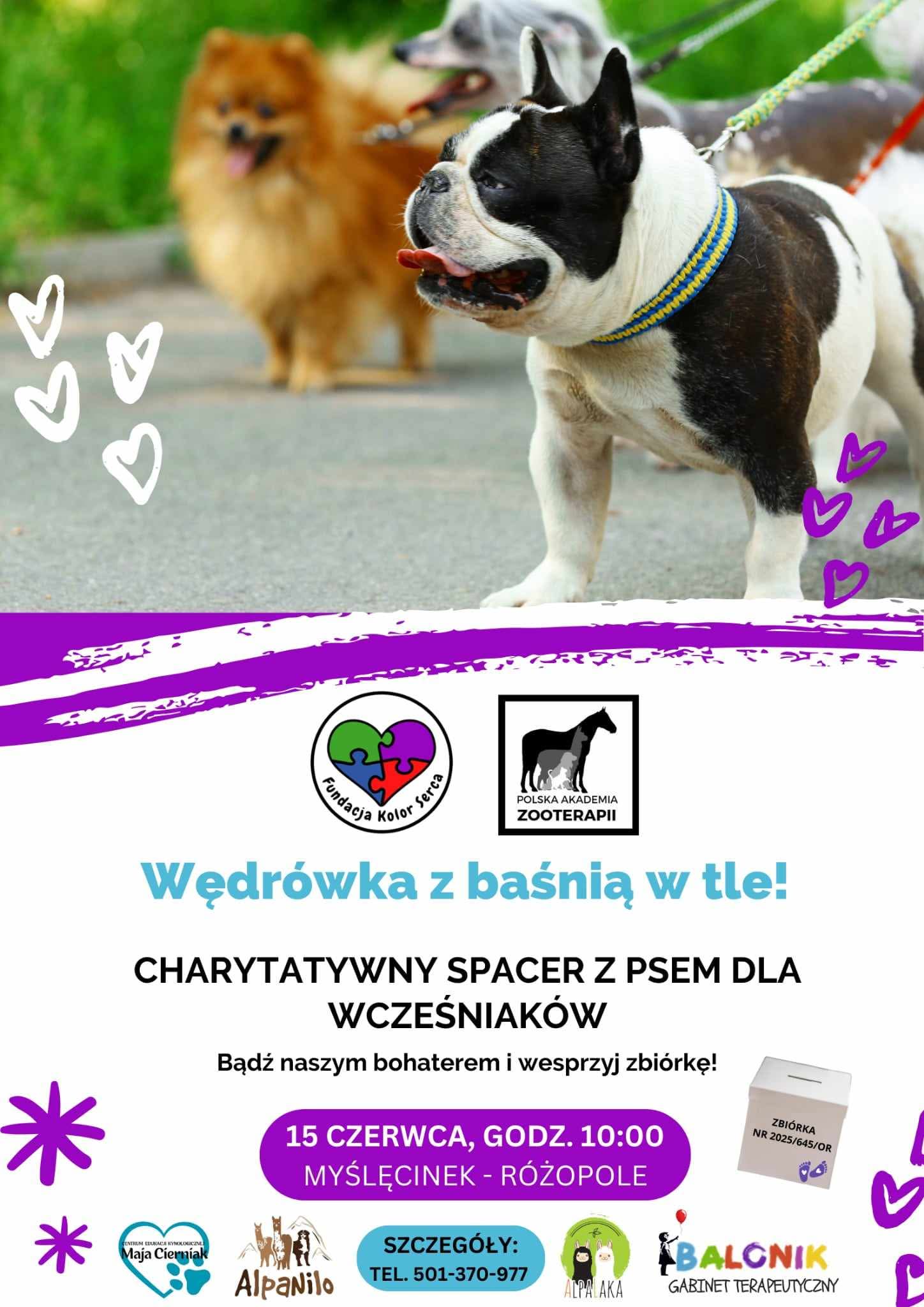 Polska Akademia Zooterapii i Fundacja Kolor Serca zapraszają na wyjątkowe wydarzenie - spacer z psami, który połączy przyjemne z pożytecznym. Będzie bajkowo, rodzinnie i przede wszystkim - z sercem!